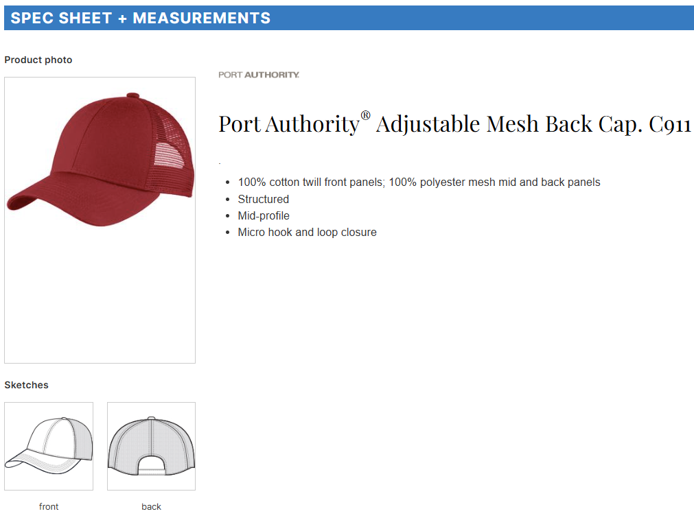 A minimum order of 12 caps, in any style with embroidery, is required. For screen printing, the order must be for 24 identical caps.