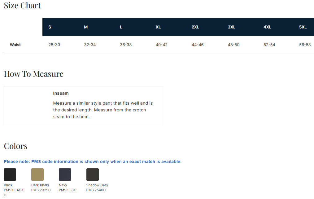 Pant prices do not include decoration. Email info@tennesseepromos for a quote on embroidery, patches, or other decorations for the pants.