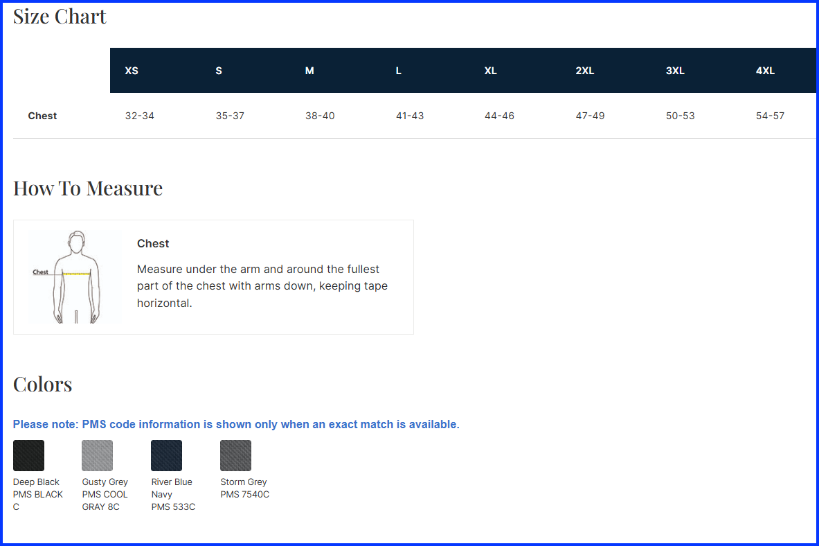 XS, S, M, L, XL, 2XL, 3XL, 4XL