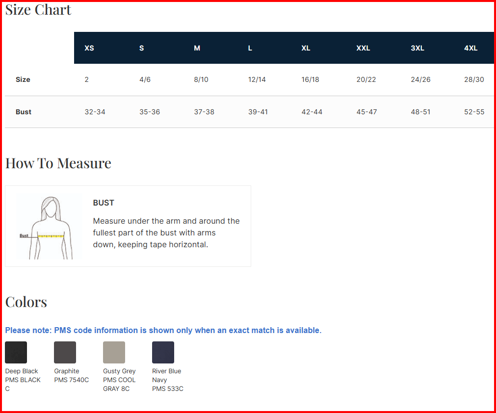 XS, S, M, L, XL, 2XL, 3XL, 4XL