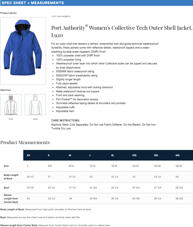 | Size | XS, S, M, L, XL, 2XL, 3XL, 4XL |