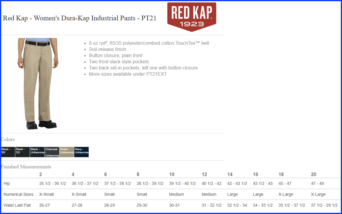 | Colors | Black 301, Black 321, Charcoal, Khaki, Navy |