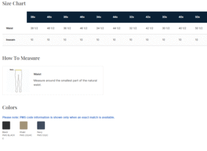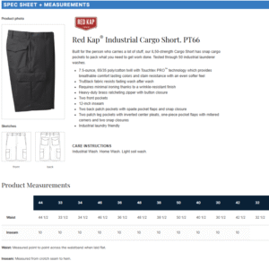| Waist | 30", 32", 34", 36", 38", 40", 42", 44", 46", 48", 50" |
