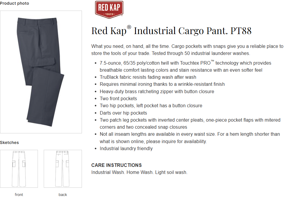 | Waist | 30", 32", 34", 36", 38", 40", 42", 44", 46", 48", 50" |